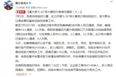 四川冕宁特大暴雨已致16人遇难,冕宁县持续组织力量